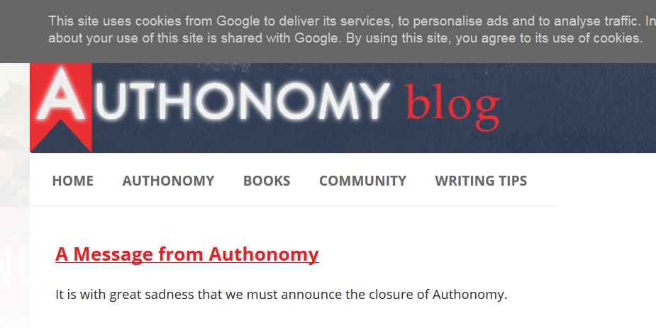 The next day I read with disbelief the announcement that Authonomy is Closing: